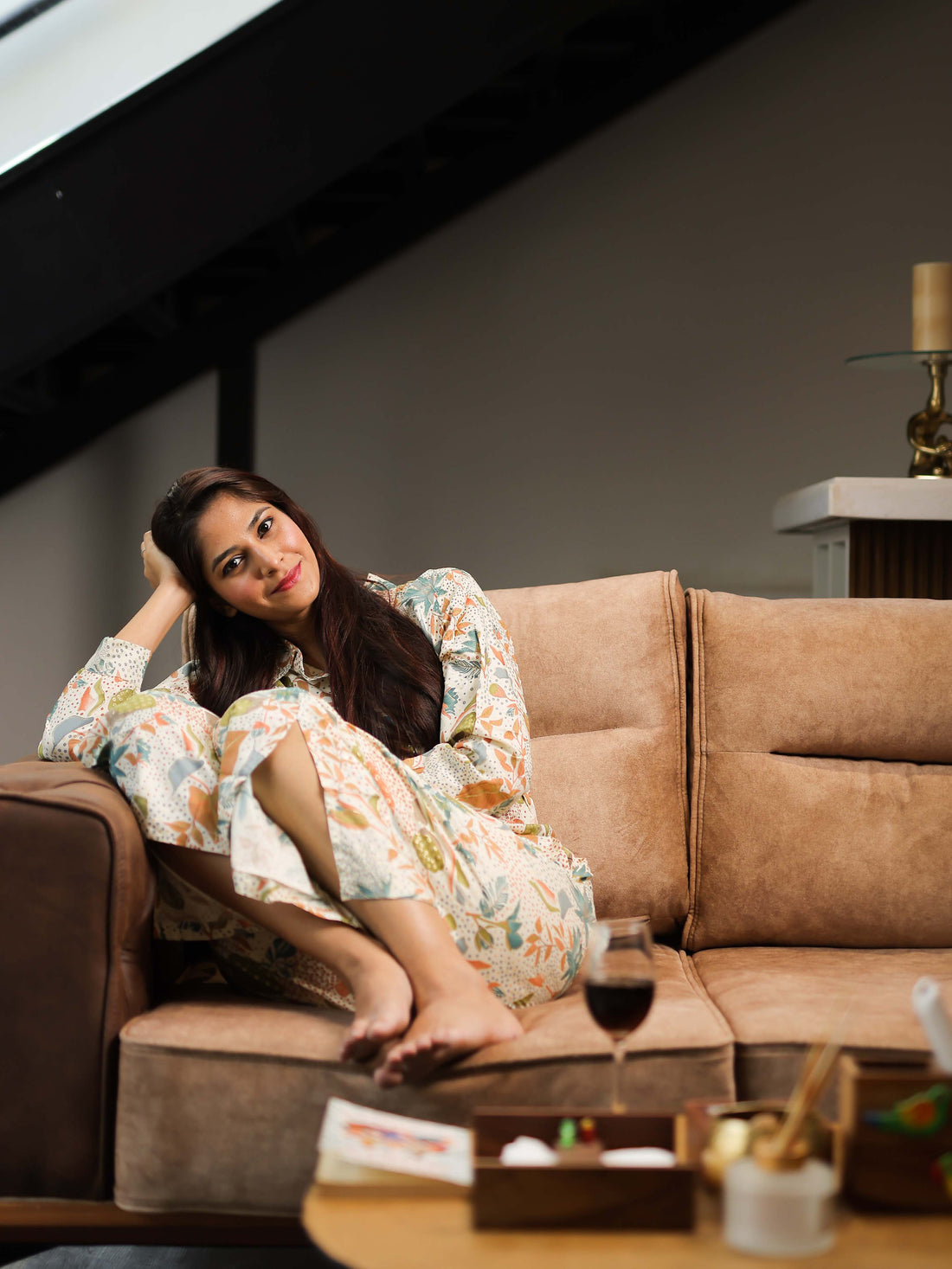 Style it with minimal gold or silver jewelry, flats, or wedges for a clean, graceful Indo-western look.