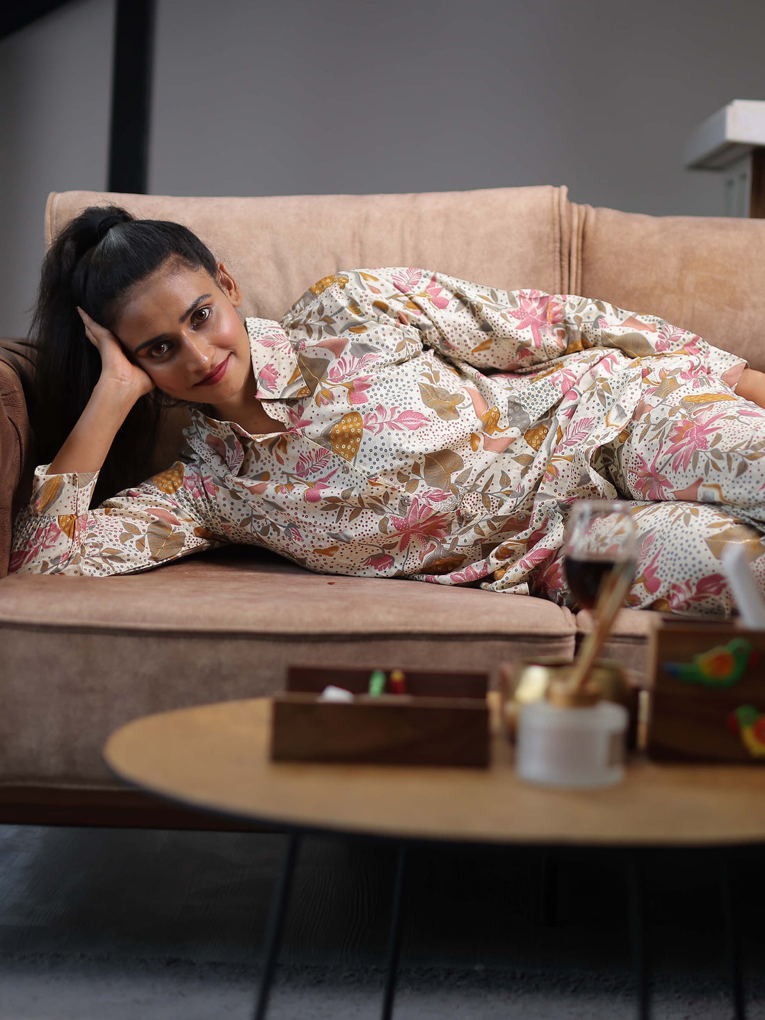 Add timeless sophistication to your daily style with this cream 3/4th sleeve co-ord set, crafted for women who prefer clean, elegant silhouettes with effortless comfort. The soothing cream colour gives the outfit a refined, premium finish, making it perfect for both casual outings and smart office-casual looks.