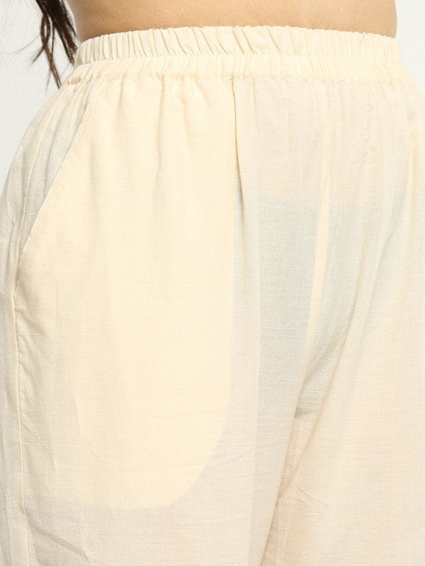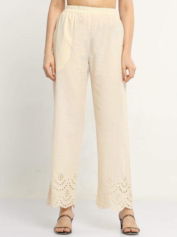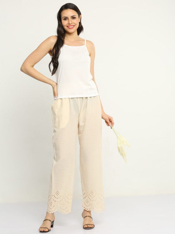 Cream Solid Cotton Regular-Fit Ankle-Length Palazzos – Lightweight Everyday Essential Bottomwear